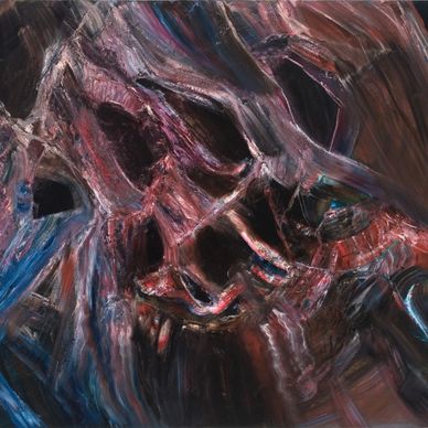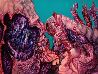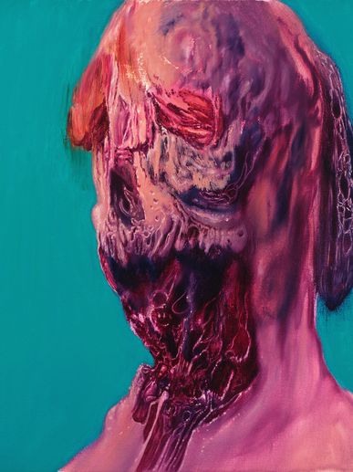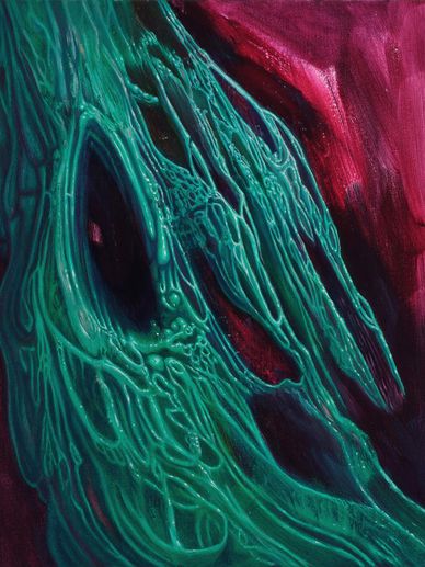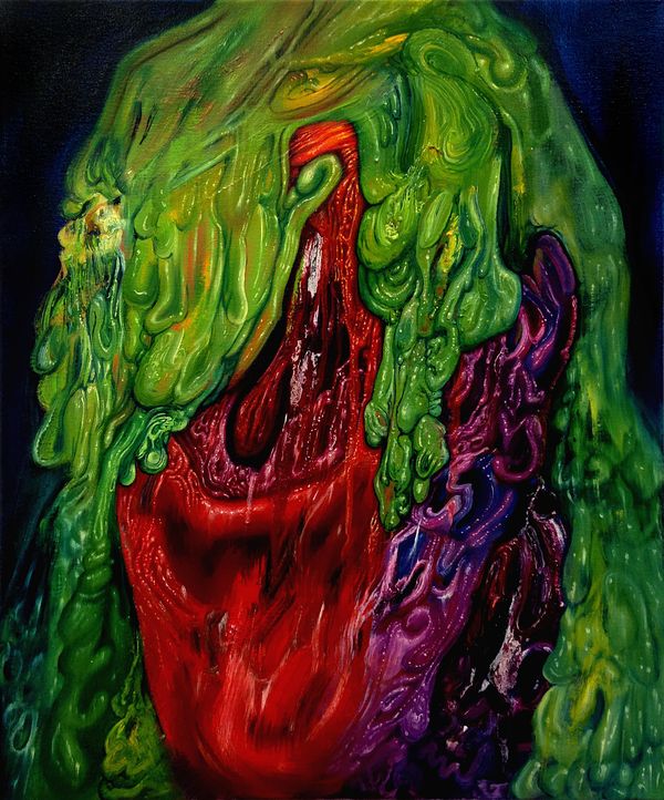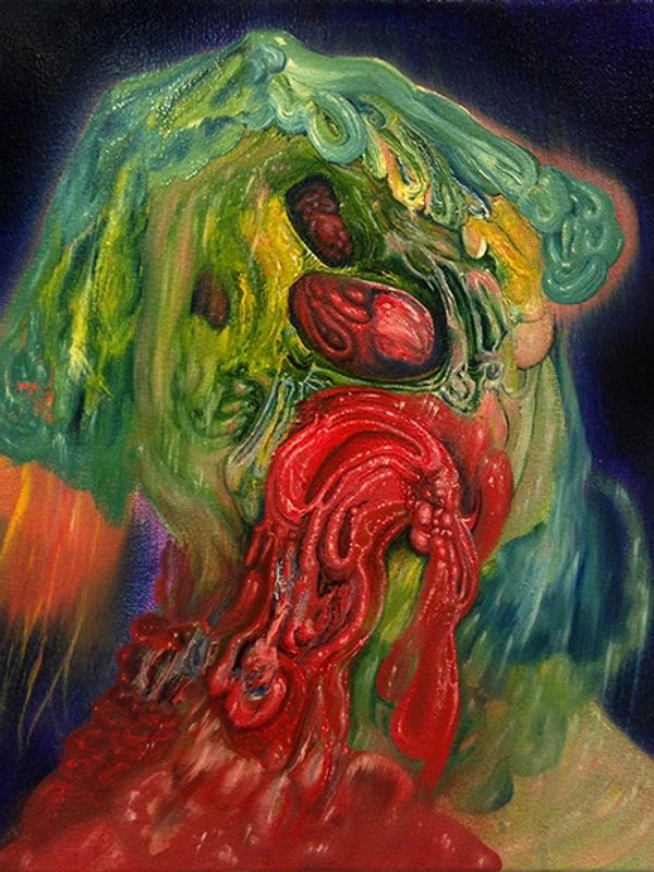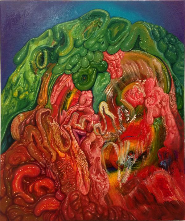 Thin Skin was the first series of work begun in my studio at the old 5pointz building in Long Island City in 2005. It was the first real crystallization of my ideas in paint that brought my interests in popular media, such as Comics and Video Games, together with my understanding of paint and the action of painting. The work is clearly about the rot and vulnerability that plagues us as living creatures, and the absurdity and fragility of existence. Each image is singular and alone, as one might feel about one's own singular perception of reality. They are vulnerable and grotesque, silly and dark. I believe they represent us as what we truly are, not as we believe ourselves to be.